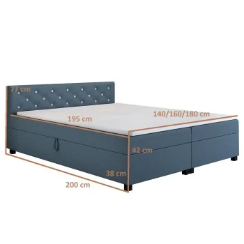 Pohovka má kompaktné rozmery a čierne nohy s výškou 5 cm, ktoré podčiarkujú elegantný vzhľad. Čelo pohovky je prešívané kryštálmi, čo jej dodáva jedinečný elegantný vzhľad. V súprave dostanete aj vrchný matrac. Vyberte si svoju obľúbenú farbu - námornícku Lux 30. Tento model pohovky je ideálny aj do ubytovní, penziónov a iných miest, ktoré potrebujú ďalší priestor na spanie a úložný priestor na lôžkoviny.